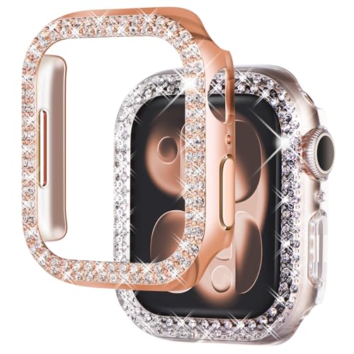WONJOY Compatible avec les coques Apple Watch 40/44/41/45 mm, protecteur d'écran en strass pour iWatch SE/Series 8/7/6/5/4 - Coque de protection brillante pour femme