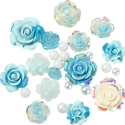 BEEFLYING Cabochon résine Plat Breloques en résine de Fleurs Bricolage Cabochons Résine Fleurs pour la Fabrication de Bijoux, Le Scrapbooking, la décoration de Coques de téléphone, Bleu