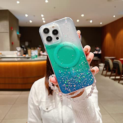 Sibada Bracelet magnétique transparent à paillettes conçu pour iPhone 14 Pro Max - Bling Sparkle Cute - Compatible avec les coques de téléphone MagSafe (2022) 6,7" (vert)