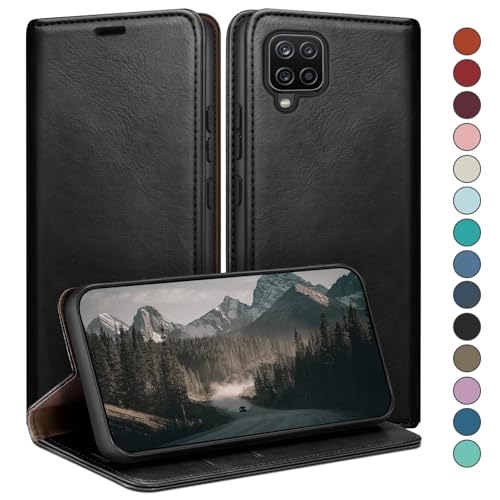 HUOUH Coque pour Samsung Galaxy A12 avec RFID Blocage Etui à Rabat en Cuir de Premium,Fentes pour Cartes,Coques de Case,Cover à Rabat pour Samsung A12 Portefeuille Le Noir