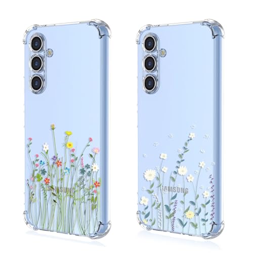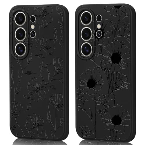 AICISINGN Lot de 2 coques de téléphone pour Samsung Galaxy S25 - Design en relief haut de gamme - Double protection de qualité militaire - Coque en TPU souple antichoc - Fleurs