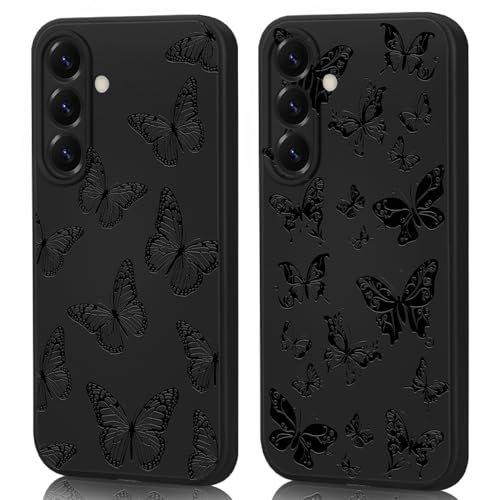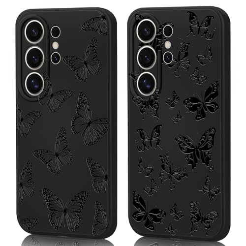 AICISINGN Lot de 2 coques de téléphone pour Samsung Galaxy S26 - En relief en relief haut de gamme - Double protection de qualité militaire - Résistante aux chocs - Souple - Motif papillons