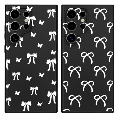 IJXYUKJIU Lot de 2 coques de téléphone pour Samsung Galaxy S25 Ultra, fines et souples, en silicone TPU avec motif nœud, protection anti-choc, jolie coque de protection idéale pour filles et femmes