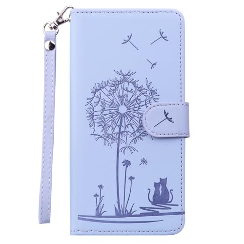 FALUWONRU Mignon Animé Chat Pissenlit de Dessin Coque pour Samsung Galaxy A22 5G Coques Téléphone Protection Etui【Protection Antichoc】【Soutenir La Debout】【Coque Portefeuille】【étuis à Rabat】,Lila