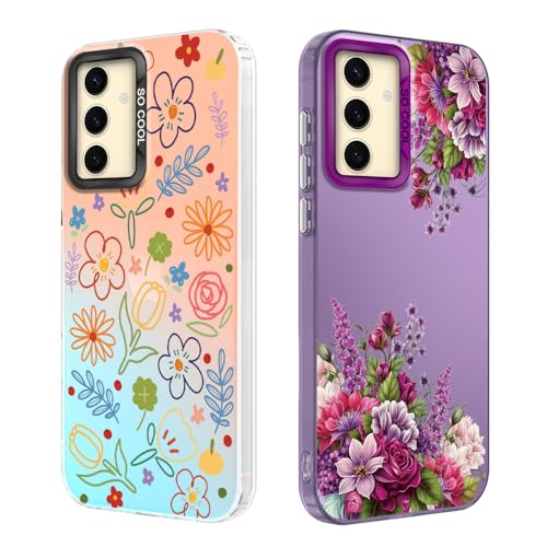 AICISINGN Lot de 2 coques de téléphone pour Samsung Galaxy A16 - Design en relief haut de gamme - Double protection de qualité militaire - Coque en TPU souple antichoc - Motif floral