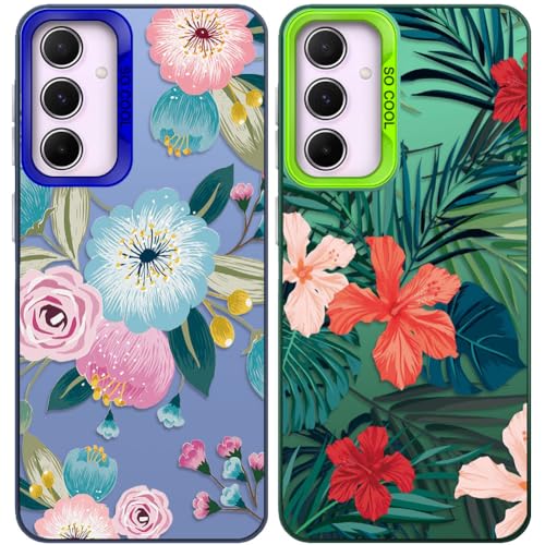 Tedyhulle Lot de 2 Coques pour Samsung Galaxy A55 5G 6,6", Motifs Feuilles Tropicales Florales esthétiques étui Protection Appareil Photo Silicone TPU Souple Antichoc téléphone Portable Case pour
