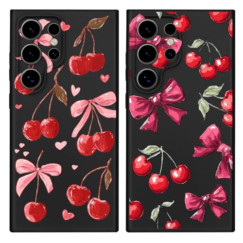 IJXYUKJIU Lot de 2 coques de téléphone pour Samsung Galaxy S25 Ultra, fines et souples en silicone TPU - Motif cerise - Protection antichoc - Jolie coque de protection idéale pour filles et femmes