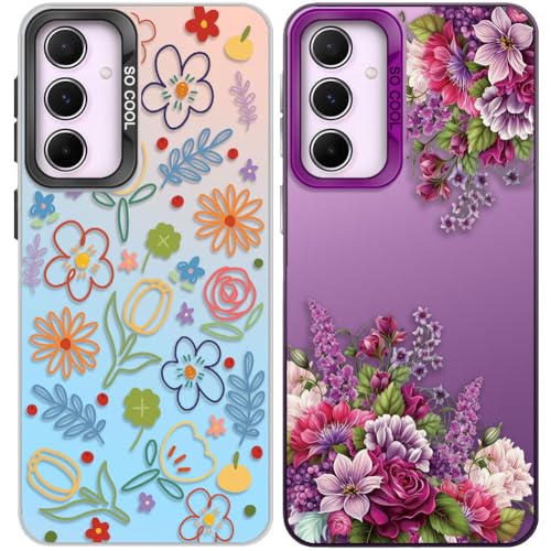 Tedyhulle Lot de 2 Coques de téléphone Portable pour Samsung Galaxy S23, Motif Floral Violet coloré pour Femmes et Filles, Coque esthétique, TPU Bumper résistant aux Chocs et aux Rayures