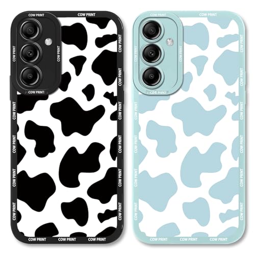 RUMDEY Lot de 2 Coques de téléphone à Motif de Vache Mignonne pour Samsung Galaxy A35 5G 6,6", Coque en Silicone Fine et Souple en TPU résistant aux Chocs pour Femmes et Filles, Noir et Bleu