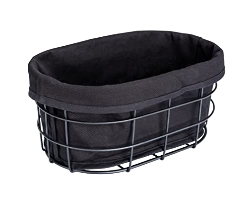 WENKO Corbeille à Pain Bela, Corbeille Black Outdoor Kitchen pour Le Bain, Petits Pains ou Baguettes, en métal thermolaqué avec Insert retirable et Lavable, 100% Coton, 27 x 17 x 11,5 cm, Noir