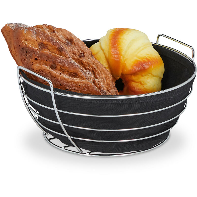 Relaxdays Corbeille à pain métal, avec insert en tissu amovible, rond, joli panier pour viennoiseries, Ø 23 cm, noir
