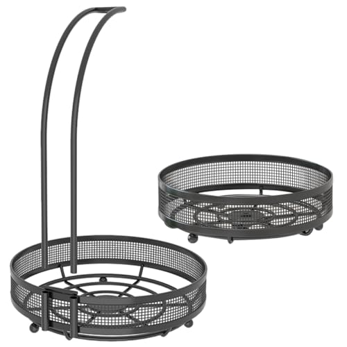 Toyvian Panier à Fruits Double Étage en Métal Noir avec Crochet Amovible Organisateur de Fruits et Légumes pour Comptoir Cuisine Corbeille Suspendue Polyvalente pour Rangement et