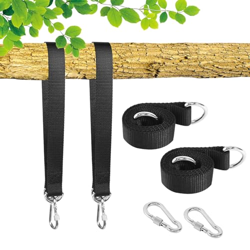 Fixation Hamac Sangle Balancoire Fixation pour Fauteuil Suspendu Corde Balancoire Exterieur Accessoire Mousquetons de Sécurité Balancoire Sangle Balancoire Arbre pour Hamac Balancoire (1.5M x 2)