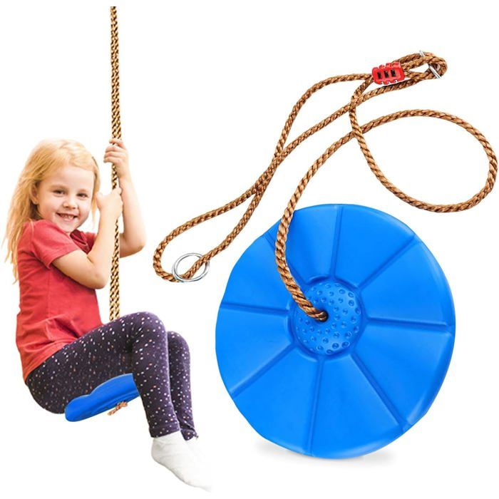 Balancoire Exterieur Corde à Grimper Balancoire Enfant en Plastique Disque Balançoire Suspendue Charge Max 150 kg (Bleu)