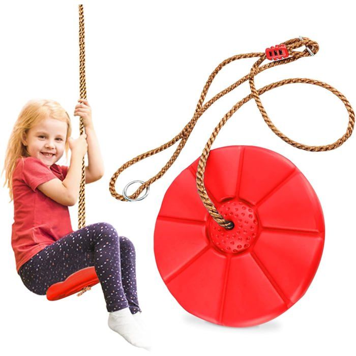 Balancoire Exterieur Corde à Grimper Balancoire Enfant en Plastique Disque Balançoire Suspendue Charge Max 150 kg (Rouge)