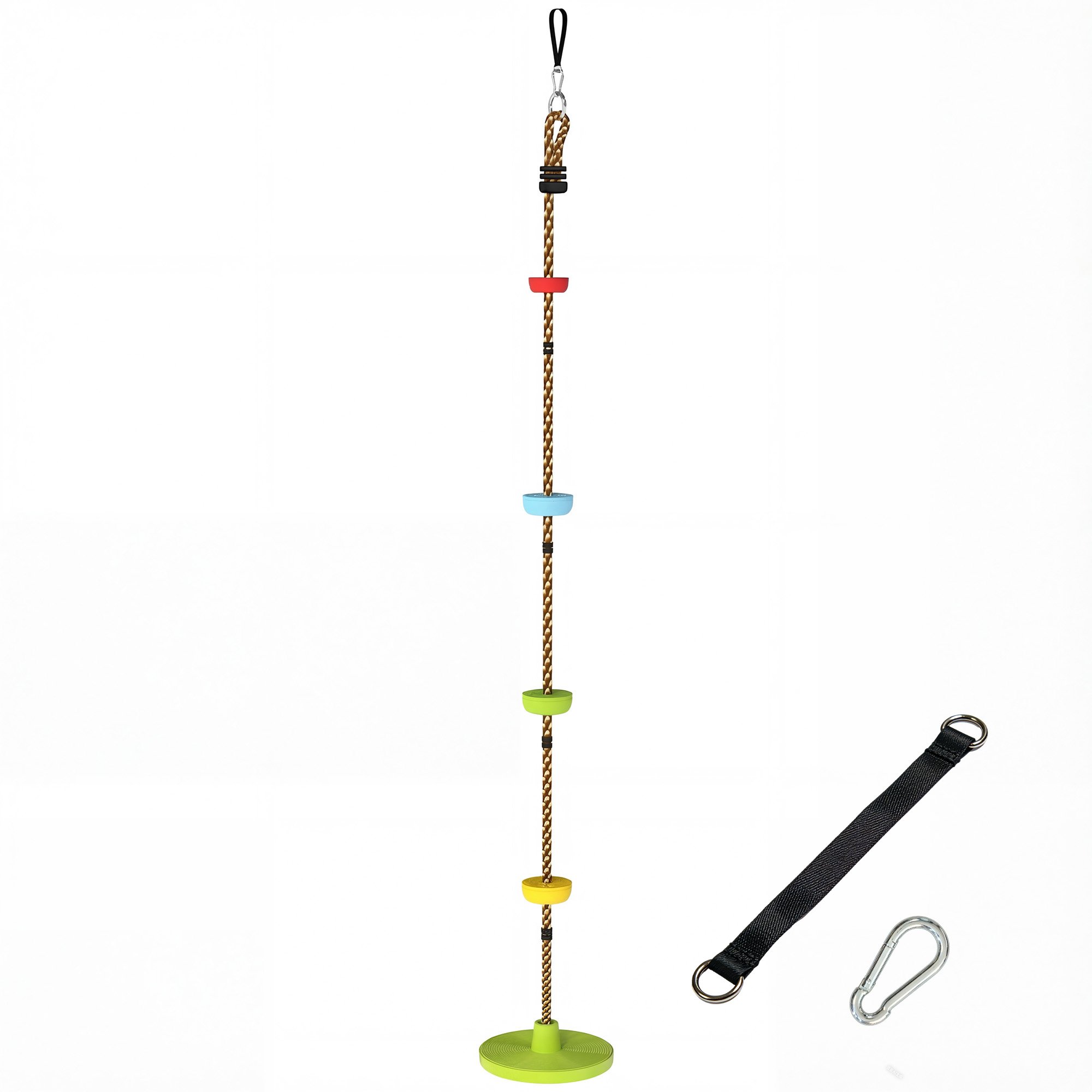 AIYAPLAY Corde d'escalade Balancoire 1,9 m, Balançoire Disque pour Enfants avec Plateforme, Sangle et Mousqueton, Vert
