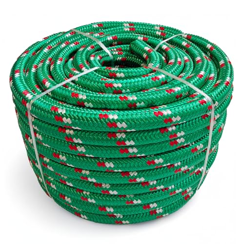 Corde polypropylène tressée Vert-Rouge - Hydrofuge, Flottante, Anti-UV et Haute résistance à la Traction - diamètre 10 mm, Longueur - 100 m - idéale pour Escalade, Levage, Bricolage et sécurité