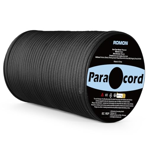 Romon Paracorde 4mm, Corde Escalade Paracord 550 9 Brins Corde en Nylon Corde Parachute Cordelettes, Cordes Tente Rope Cordon Tactiqu pour Survie Extérieur, 250kg Charge de Rupture, Noir, 100m