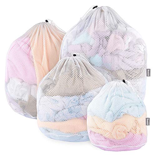 Yoassi Filet Machine à Laver, 4 Pcs Sacs de Lavage à Fermeture par Corde, Filet à Linge en 4 Dimensions pour Chemisier, Sous-vêtements, Soutien-Gorge, Lingerie etc.