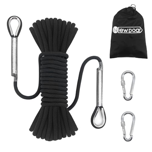 NewDoar 14KN Corde d'escalade Statique 8mm Cordon Accessoire pour Équipement 10m,20m,30m,50m Corde d'évacuation avec 2 Mousquetons pour d'escalade sur Glace Corde de Sauvetage Incendie-Noir/30 m