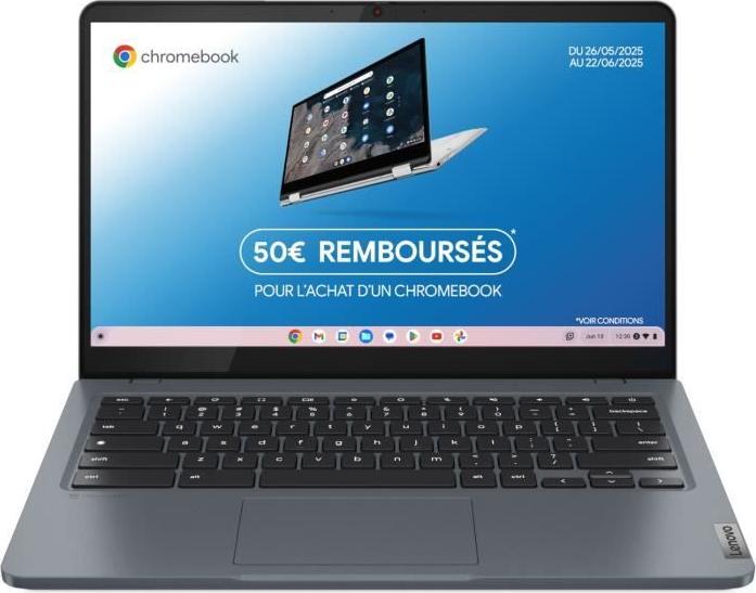 Ordinateur portable Lenovo IdeaPad 3 14IAN8 Chromebook Plus | Système d'exploitation Chrome – Écran Full HD 14'' – Core i3-N305 – 8 Go RAM – 128 Go stockage – AZERTY