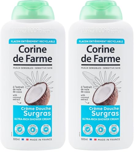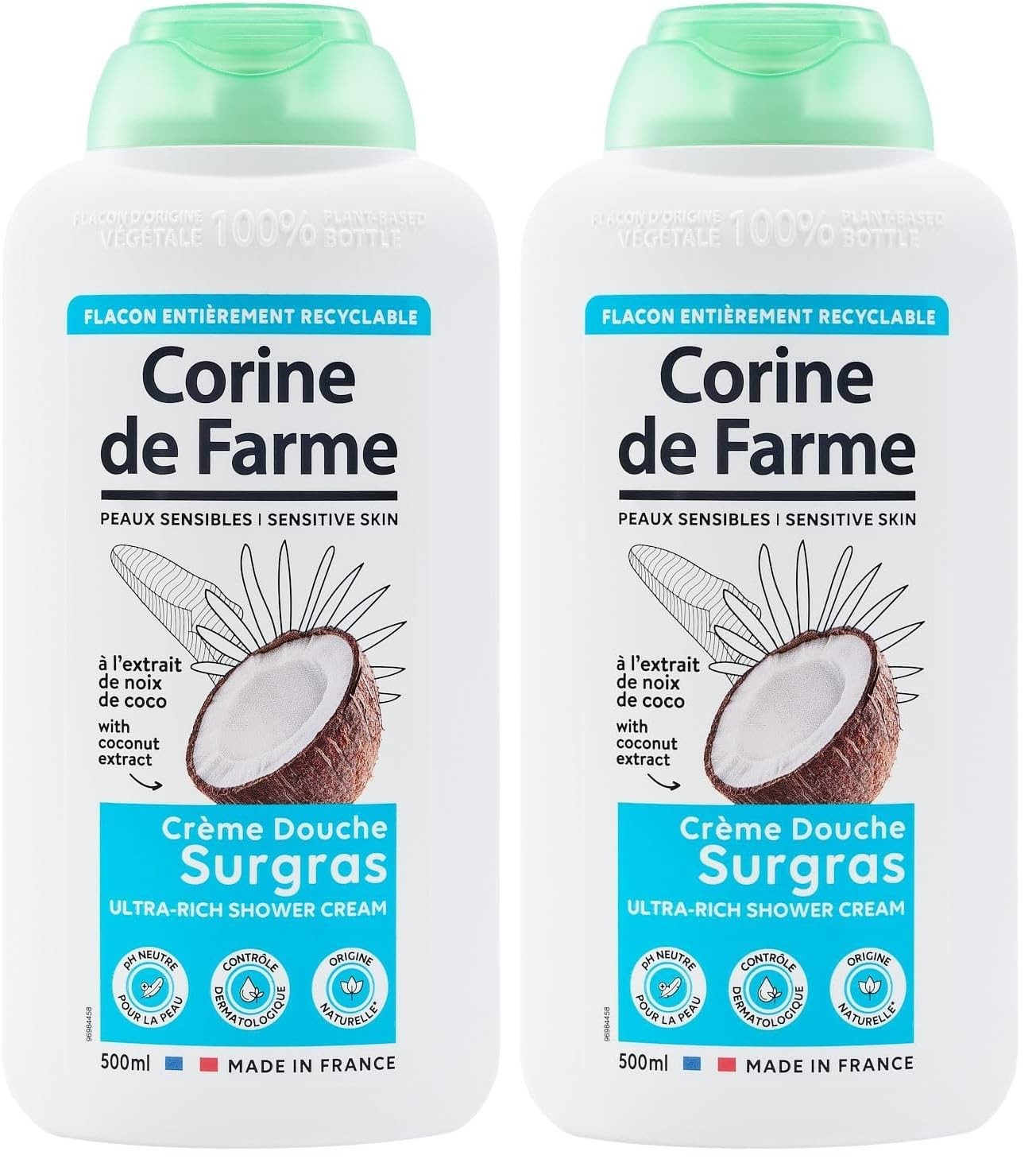 Corine de Farme - Crème Douche Surgras à l'Extrait de Noix de Coco - pH Neutre, Origine Naturelle - Contrôle Dermatologique - Fabrication 100% Française - 500ml (Lot de 2)