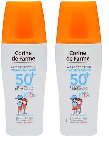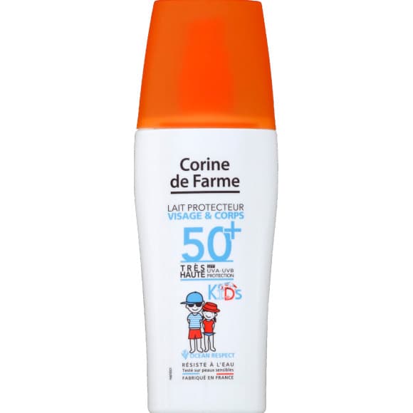 Corine de Farme - Lait Protecteur SPF50+ KIDS - Haute Protection Solaire Visage et Corps - pour Peau Fragile des Enfants - Monoï de Tahiti - Hypoallergénique - 150 ml - Fabrication Française
