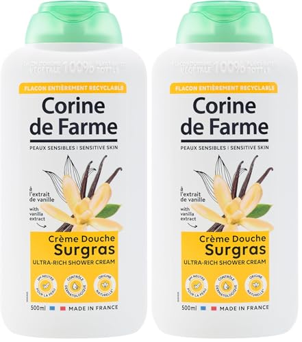 Corine de Farme - Crème Douche Surgras à l'Extrait de Vanille - pH Neutre, Origine Naturelle - Contrôle Dermatologique - Fabrication 100% Française - 500ml (Lot de 2)