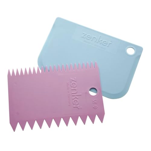 Zenker 43919 Corne patisserie, lisseur gateau patisserie, spatule patisserie decoration, racloir patisserie, layer cake decoration, spatule cake design, Plastique, Bleu, 12 x 12 cm