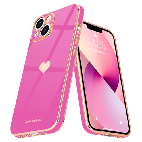 Teageo Coque pour iPhone 13 en Silicone Galvanisé Or Ultra Mince avec Motif Coeur d'amour Mignon Housse Étui de Protection Complète du Corps Antichoc Anti-Rayures pour iPhone 13, Rose Pink