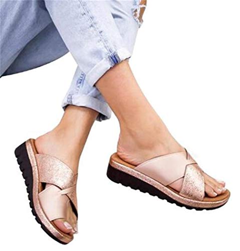 Onsoyours Femmes Sandales Orthopédiques Hallux Valgus Tongs Confortables avec Correction du Gros Orteil Pantoufles Décontractées À Bout Ouvert avec Correcteur D'oignon C Or 40 EU