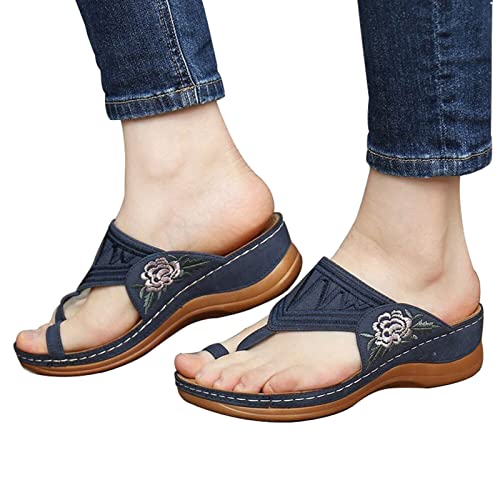 Yadlan Sandale Orthopedique Femme Hallux Valgus, Plates Chaussures Orthopedique Confortables Été Tongs À Talons Plats Correcteur Plage Claquettes avec Boucle à L'orteil(Size:38,Color:Bleu)