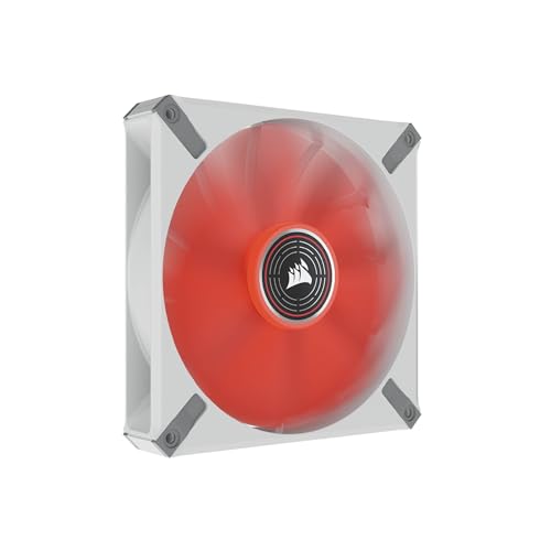 Corsair ML140 LED ELITE, 140 mm PWM Ventilateur à Rouge (Technologie CORSAIR AirGuide, Roulement à Lévitation Magnétique, Jusqu’à 1 600 tr/min, Huit LED Ultralumineuses) Vendu Seul, châssis Blanc
