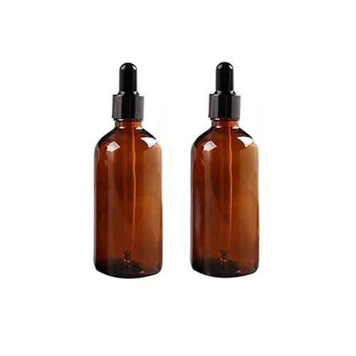 Lot de 2 flacons compte-gouttes vides en verre ambré de 100 ml avec compte-gouttes en verre pour huiles essentielles, formules cosmétiques, parfums et autres liquides