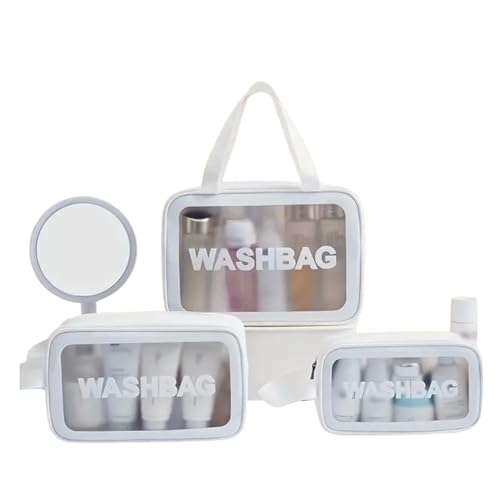 HealthyMoov Trousse de Toilette Pochette Maquillage cosmétiques parfums Vanity Case Sac de Voyage Accessoire de beauté Rangement Salle de Bains Transparent étanche Waterproof (Blanc 3pcs)