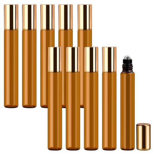 Jizxol Roll on Lot de 10 bouteilles d'huile essentielles à rouler vides de 10 ml avec bille en acier inoxydable pour huiles, parfums, cosmétiques, parfums, massages