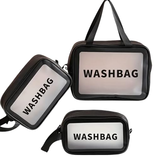 HealthyMoov Lot de 3 Trousses de Toilette Pochette Organisateur Maquillage cosmétiques parfums Vanity Case Sac Voyage Accessoire beauté Rangement Transparent Noir 3 pcs étanche Waterproof
