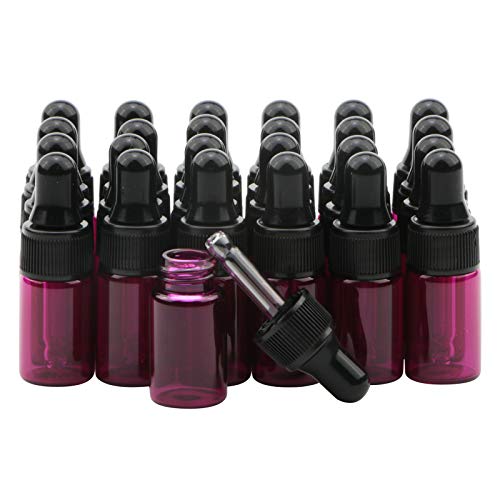 Rowiz Lot de 30 flacons rechargeables en verre rose de 3 ml pour huiles essentielles, parfums, cosmétiques, liquides, aromathérapie, lotions, échantillons, tubes et bouchons à vis noirs