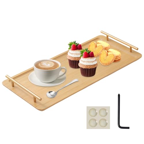 Plateau de Salle de Bain en Bambou, Plateau de Service Bois avec Poignée, Plateau Décoratif Rectangulaire pour Organiser, pour Bijoux Cosmétiques Dessert Café Parfums, 44 * 20cm (Naturelle)