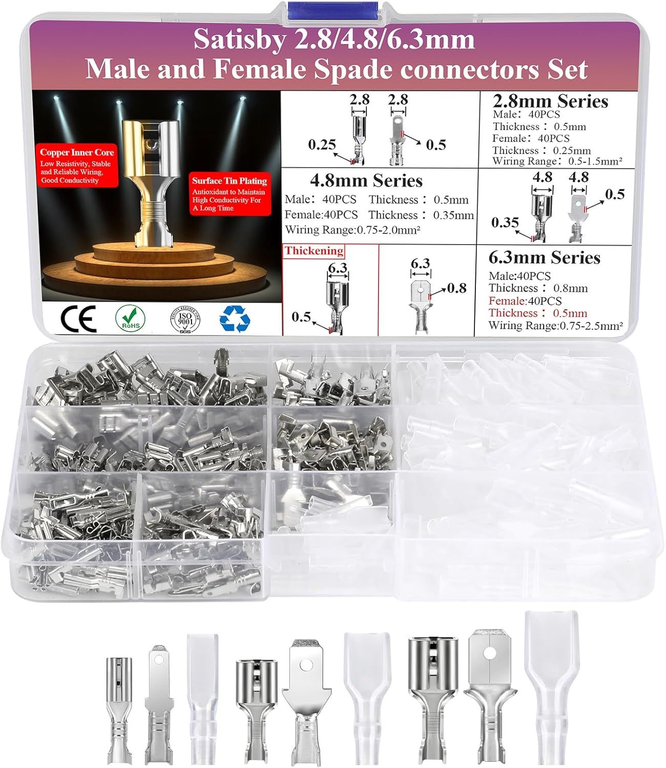 GKWL-Cosses Plates À Sertir 2.8 Mm 4.8 Mm 6.3 Mm Mâle & Femelle,Épaissi Cosse Plate Femelle 6.3,Étamé Cuivre Hautement Conducteur,Résistant À L'Oxydationavec Isolant Sleeve