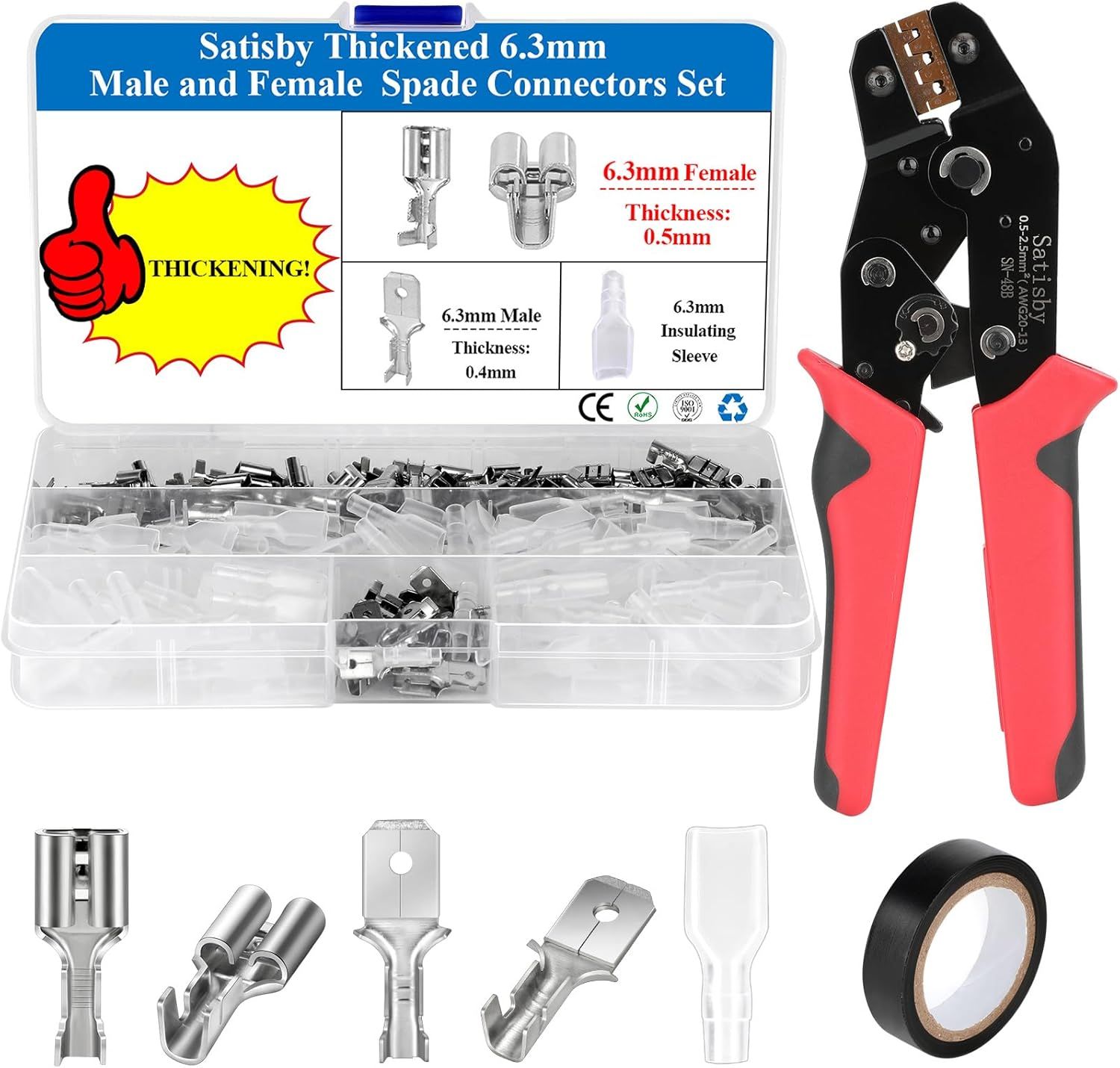 GKWL-Épais 6.3Mm Cosse Plate Femelle,Cosse Mâle 6.3Mm,Cuivre Étamé,Hautement Conducteur,Résistant À L'Oxydation,Avec Outil De Sertissage Spécial,Isolant Sleeve,Ruban Isolant