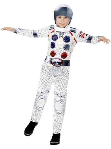 Smiffys Costume astronaute Deluxe, Blanc, avec combinaison-pantalon et coiffe, impression numérique