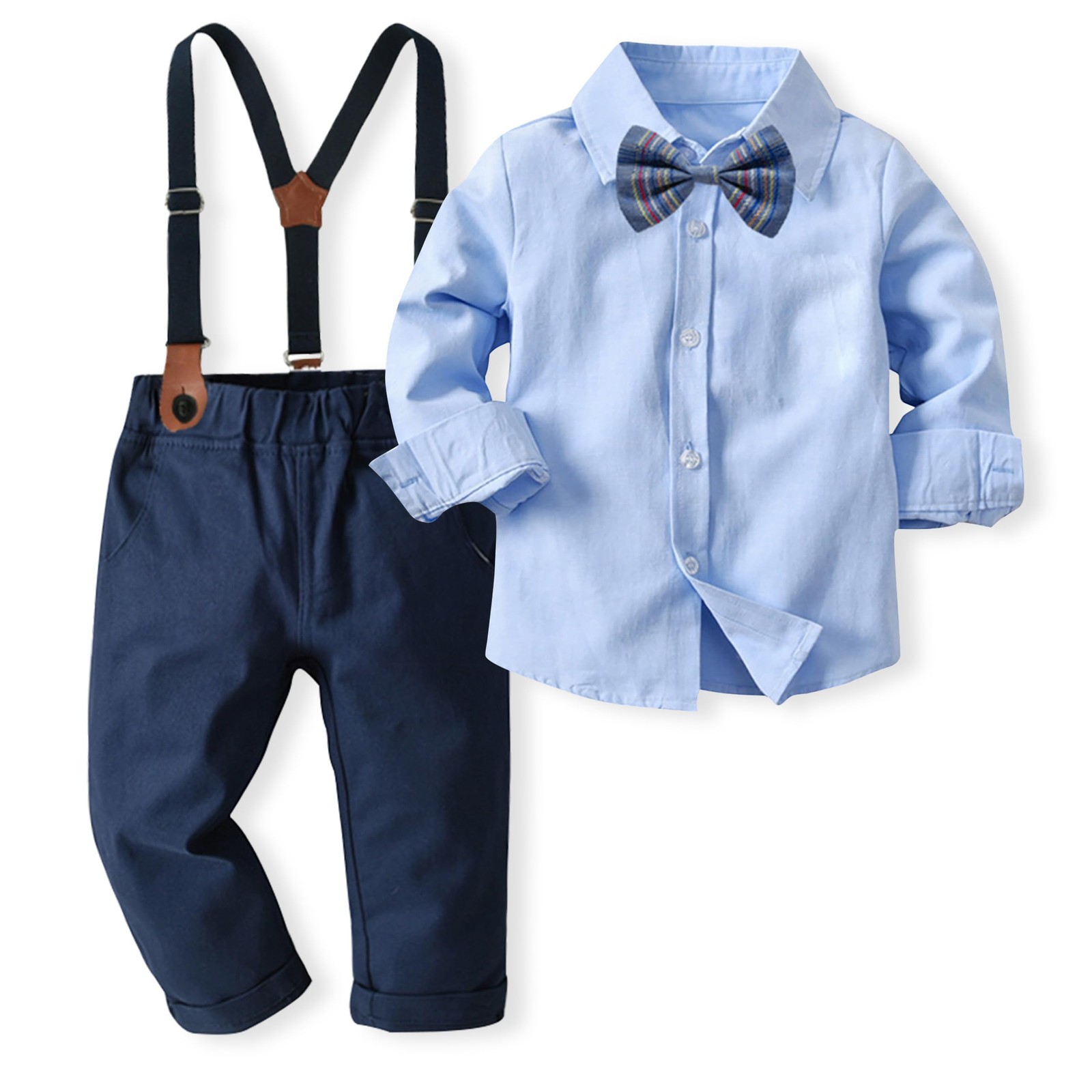 Bebe Garçon Costume Gentleman, Noeud Papillon Chemise Carreaux + Pantalon 4