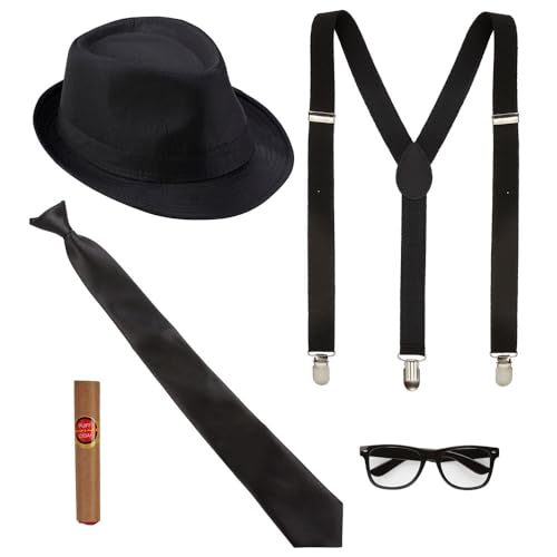 Widmann 68558 – Costume Roi du Blue 5 pièces Chapeau Bretelles cravate, lunettes et cigare, Mafia Boss, Brothers, accessoires, carnaval, déguisement, fête à thème,Multicolore,Taille unique