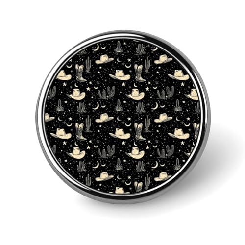 Épingles à boutons pour sacs à dos – Broche ronde tendance avec nœud et bottes de cowboy imprimées pour vêtements et chapeaux – Broche ronde en métal pour homme – Accessoire de costume