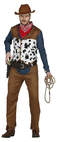 FIESTAS GUIRCA | Costume de Cowboy Adulte (52-54/L) - Chemise, Gilet et Pantalon - Déguisements du Far West, Cowboy et Texas pour Halloween, Carnaval et Fêtes Déguisées - Homme - Marron et Bleu