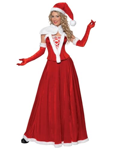 Smiffys Costume de Mère Noël de luxe, Rouge, avec bonnet, cape, corset, jupe et gants Halloween