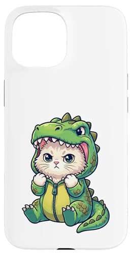Costume de Dinosaure Mignon Chaton drôle Monstre Kawaii T-Rex Dinosaure Coque pour iPhone 15