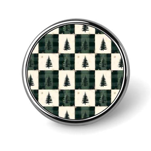 Épingles à boutons pour sacs à dos – Broche ronde en forme de sapin de Noël vert imprimé à carreaux pour décoration de vêtements, chapeaux, accessoires de costume pour homme
