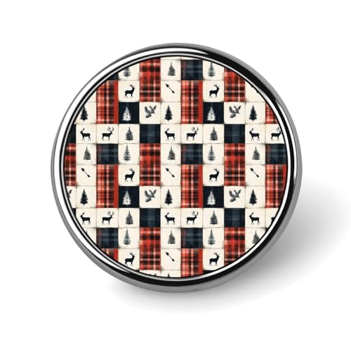 Épingles à boutons pour sacs à dos – Broche ronde tendance de Noël avec imprimé élan à carreaux pour sublimation pour vêtements, chapeaux, décorations en métal pour homme, accessoire de costume
